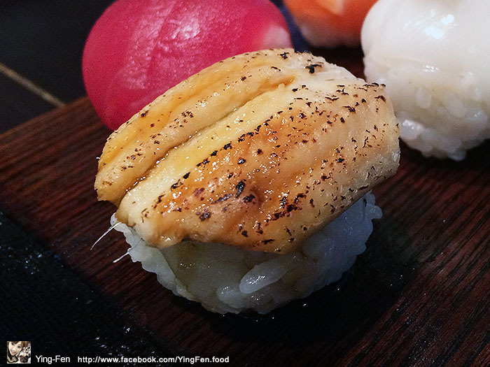 穴子魚這個魚好特別,我沒有吃過,魚有烤過上面有焦香味道,有加點醬油增加味道,魚肉非常的軟又嫩,輕輕咬就可以了。