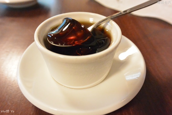 我們還要留著繼續吃下午茶甜點,所以服務人員先安排我們進去室內位子,才知原來還有餐後甜點-黑糖凍,淡淡的黑糖香、淡淡的甜味,像是這裡的步調一樣,淡淡的…。