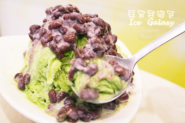 ICE Galaxy的抹茶雪花冰有著淡淡的苦甜味道,紅豆還是老闆自己慢慢花上數小時熬煮