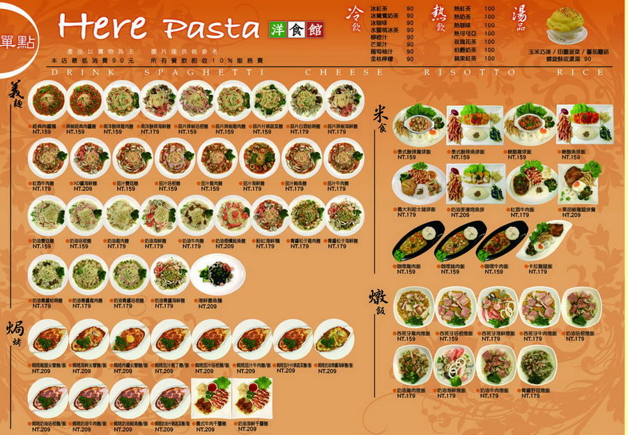 主餐有飯(也有燉飯) 有麵 有焗烤幾乎涵蓋所有人的喜好
