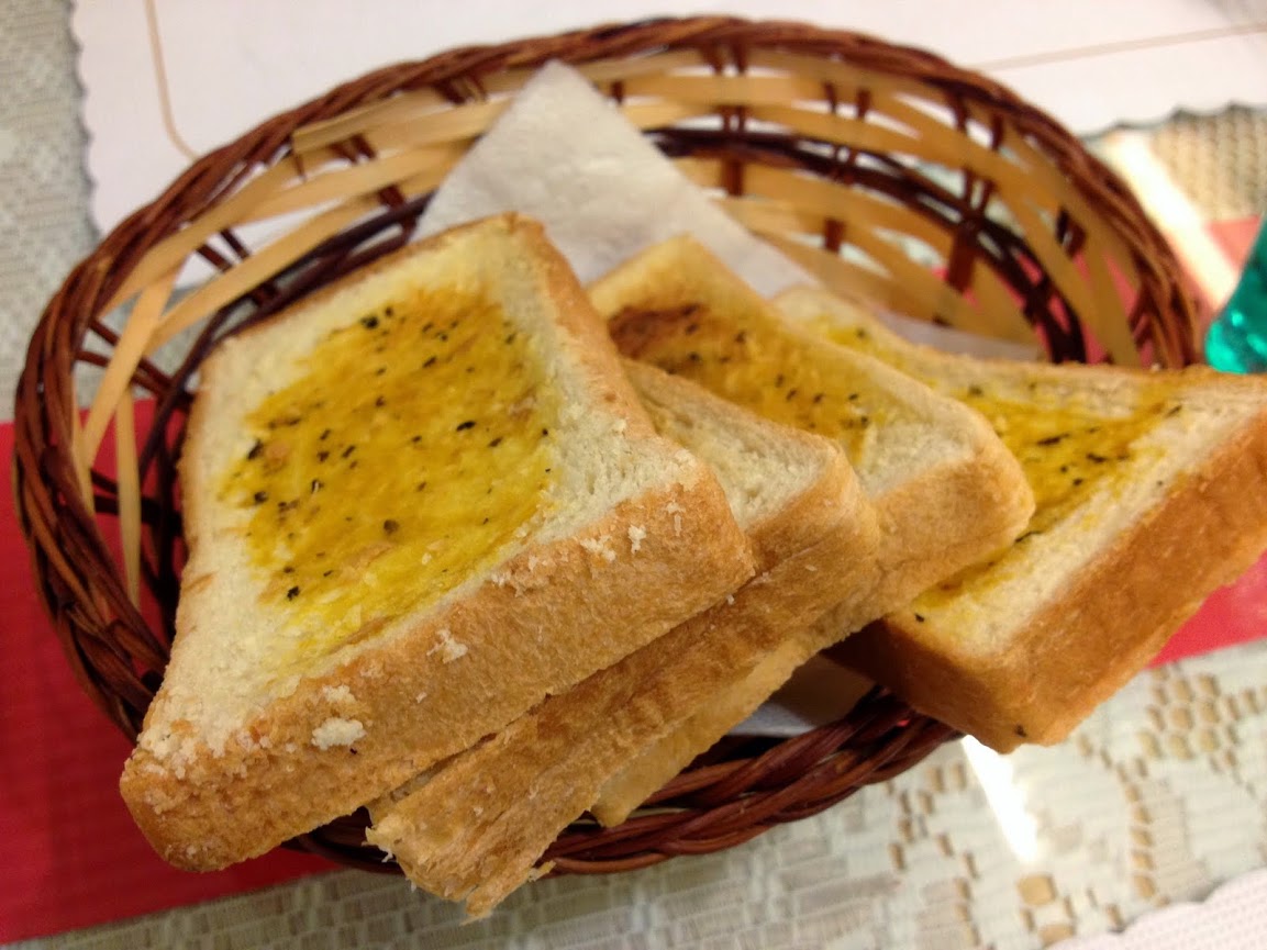 蒜味吐司四片,蒜味相當於牛排店的等級,分量不錯,口味還算可以,當然不能跟價位比較高的西堤相比,不過花少少的錢吃多樣的餐點,小編也覺得很不錯的美食享受!