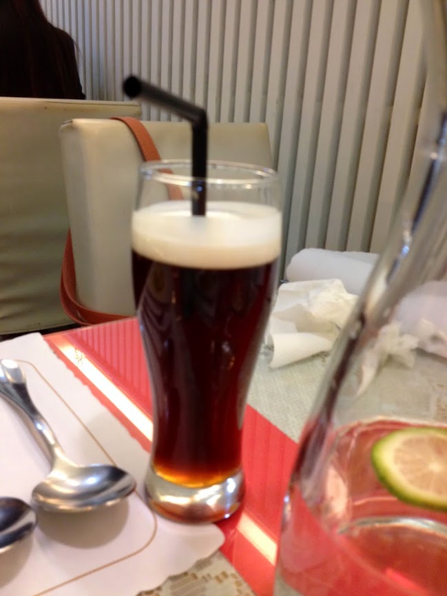 左圖所示,看起來是煉乳的成分非常濃稠,喝起來像是奶昔