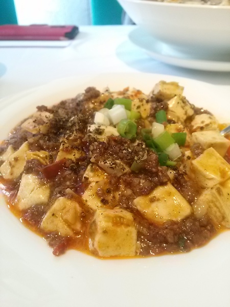 這是第一次吃到麻婆豆腐的肉末和豆腐1:1豪華登場!聽說還是用美國安格斯等級的牛絞肉,滿滿的牛肉香,與麻婆醬的鹹麻醬搭配的天衣無縫,好想請教主廚的肉香是怎麼烹調出來的?還有,豆腐也是,就是有種別於嫩豆腐的豆香,這道麻婆豆腐真的是我吃過最合也最對味的一次(印月的天香豆腐鍋我要變心了!SORRY!),極力大推這道!!!!!!99.9分!!!!!