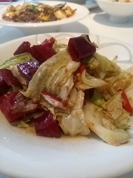 親切的高麗菜就是簡單多了宮保爆香及醬醋的提味,可別小看它樸實的外表,在吃完沸騰的口味後,它可是能舒緩辣味的刺激喔!