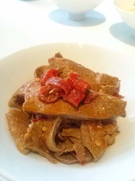 豬肝粉嫩帶點微辣的椒香,拌上的辣椒是經過醋漬的手做泡椒,完全不辣耶!!!好神!而且一定要泡椒配豬肝一起入口,味道才是加分唷!推推!!!