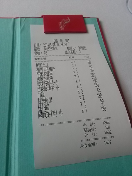 孔雀的餐點有提供單點及合菜,合菜從最低的2人起,到一桌10合分享的桌菜都有,稍微心算了合菜的價位,怎麼會這麼親民?平均每人只要$380+10%,另外搭配店內飲料還能有優惠價,在還沒點菜前就已經思考下次要再找誰來訪了!(嘻嘻!總歸還是愛吃啦!)