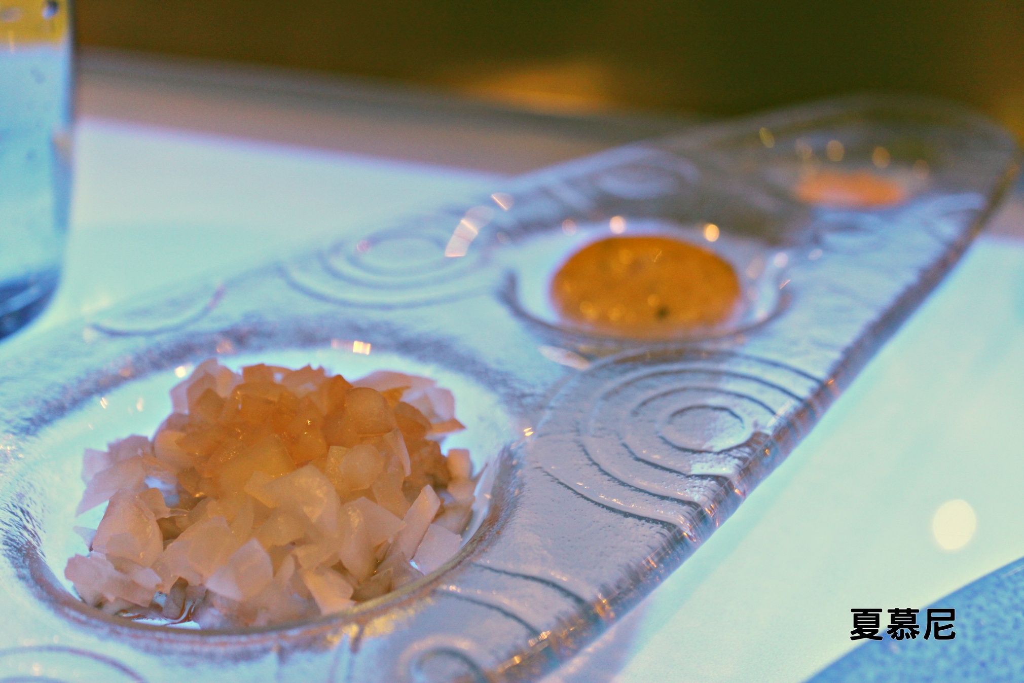 餐前小點上來囉 洋蔥末和沾醬 洋蔥完全沒有辛辣味 且味道非常好
