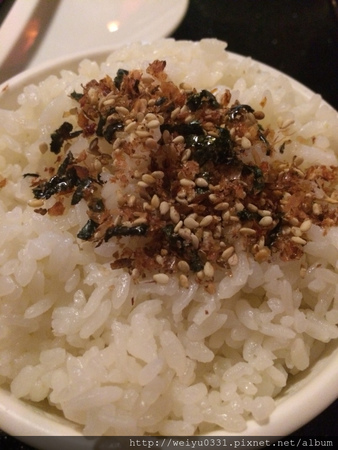 白飯上面配上香鬆,讓白飯口感更多層次。