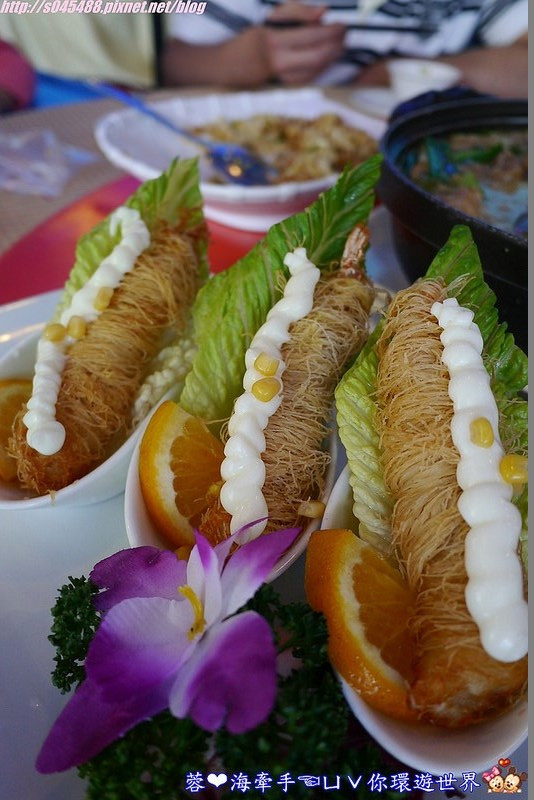 牛蒡纏繞在蝦子周圍,增加一點脆的口感,上頭美乃滋既然帶點酸口感