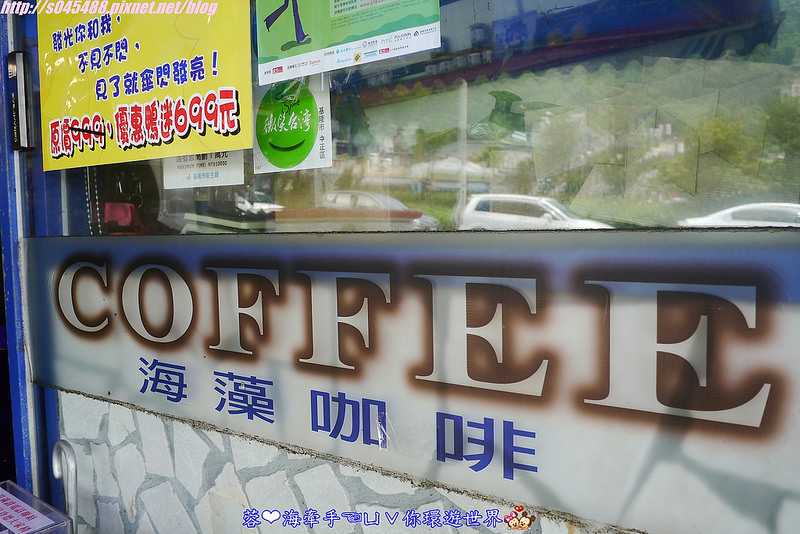 漁品軒旁有個停車場,所以停放車輛十分方便,往餐廳方向走去還可以看見有賣"海藻咖啡"耶 ▼