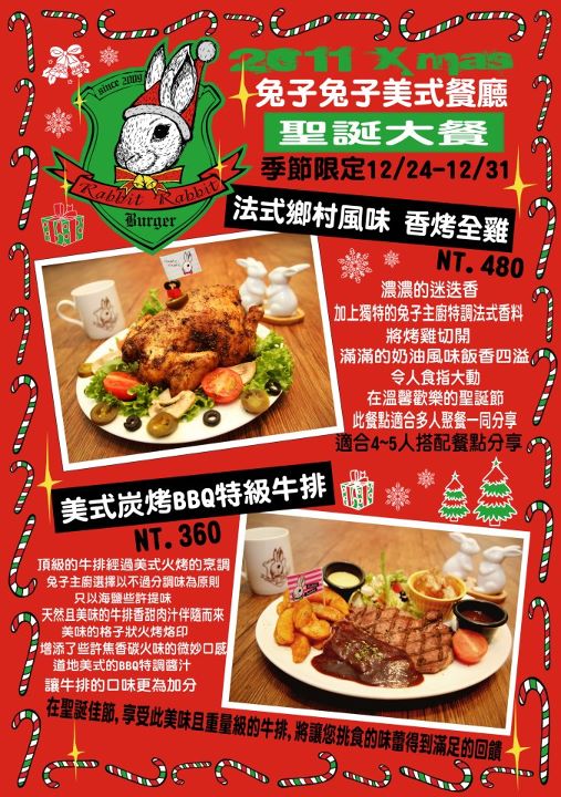 想要和好朋友一起過聖誕節!可別錯過~兔子兔子美式餐廳