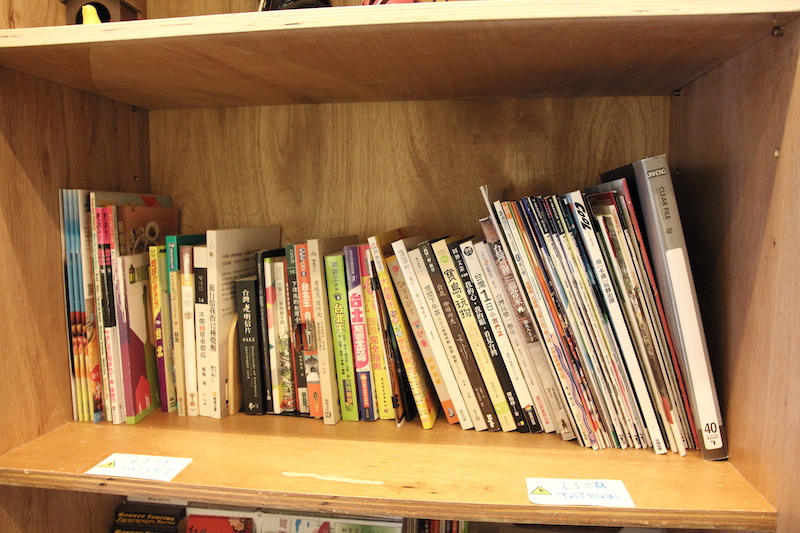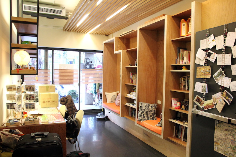 櫃檯旁的空間是個休憩區,這裡的大桌子上有一些明信片、紀念品的展售,另外也有旅遊資訊與北投地區觀光資料可以參考。書架上也有不少旅遊書可以參考瀏覽,是很標準青旅常見的設施。