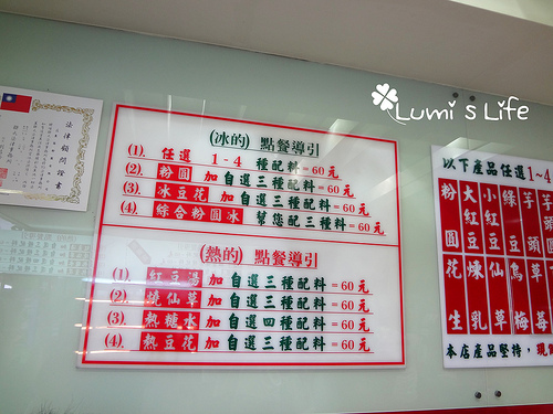 牆上掛著點餐指引,一碗都是60元,有冰的也有熱的可以自由搭配。
