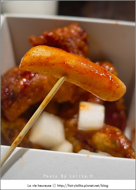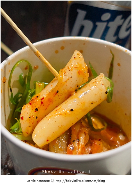有別於剛才吃到的油炸年糕,這個用炒的烹煮方式,吃起來顯得軟嫩許多,韓國泡菜酸度太高,比起帶了甜味的韓國甘醬倒是遜色不少,若要說它的優點,就是年糕的口感比較討喜而已。
