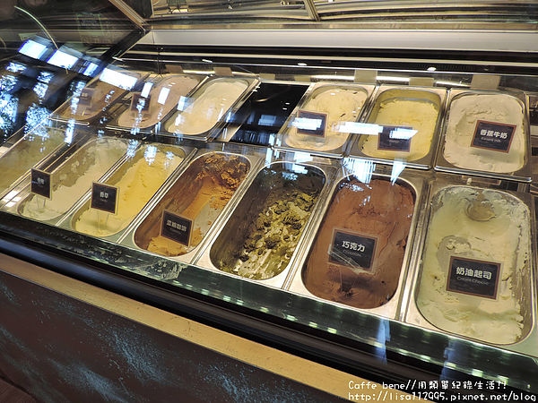 左邊的冰櫃也有各式冰淇淋的口味讓顧客選擇