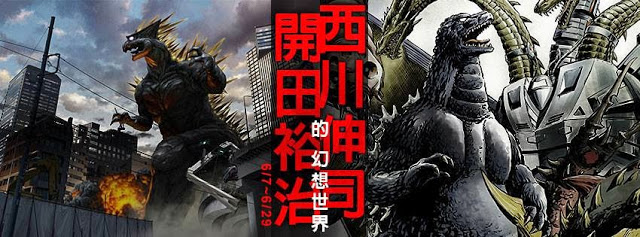 以日本知名的怪獸繪師-開田裕治、以及特攝界的知名設計者-西川伸司兩位創作者歷年來的畫作為主進行展出,包括有哥吉拉、特攝、幻想生物、貓等各種主題。