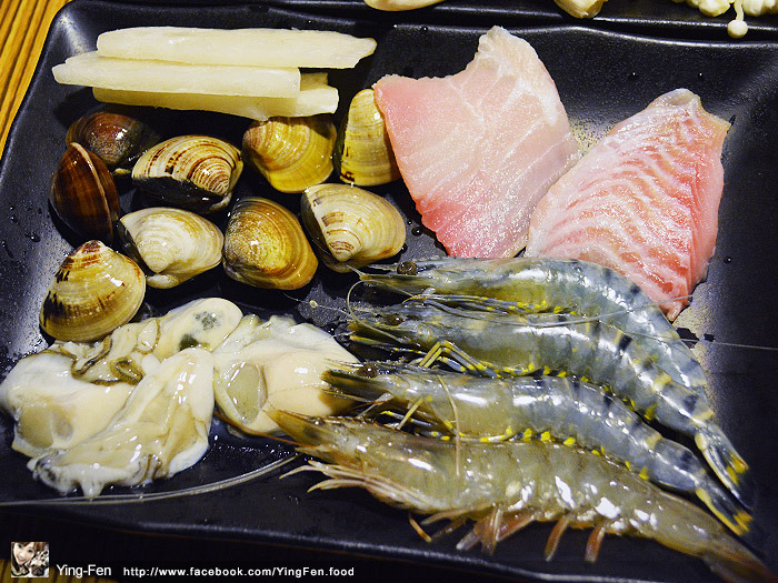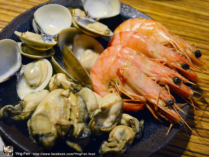 海鮮類,點了花枝、蛤蜊、鮮蚵、鯛魚片和白蝦。