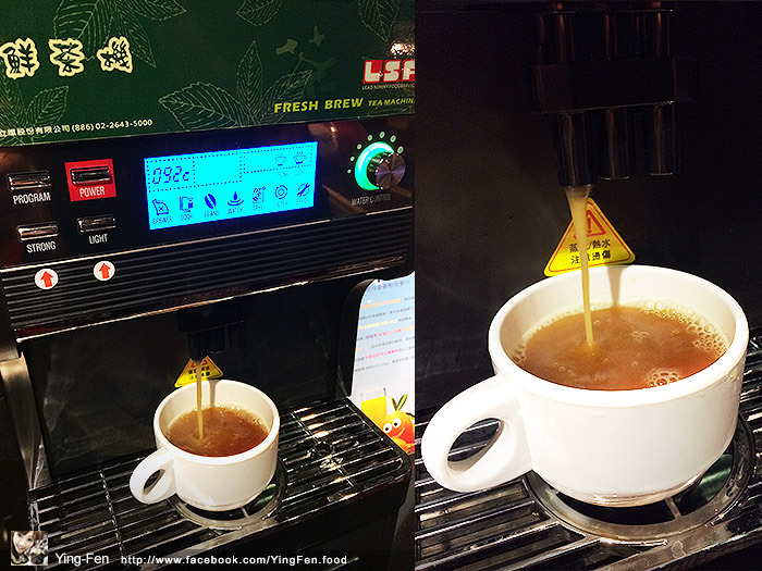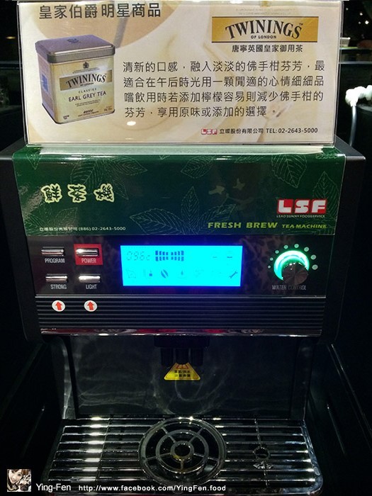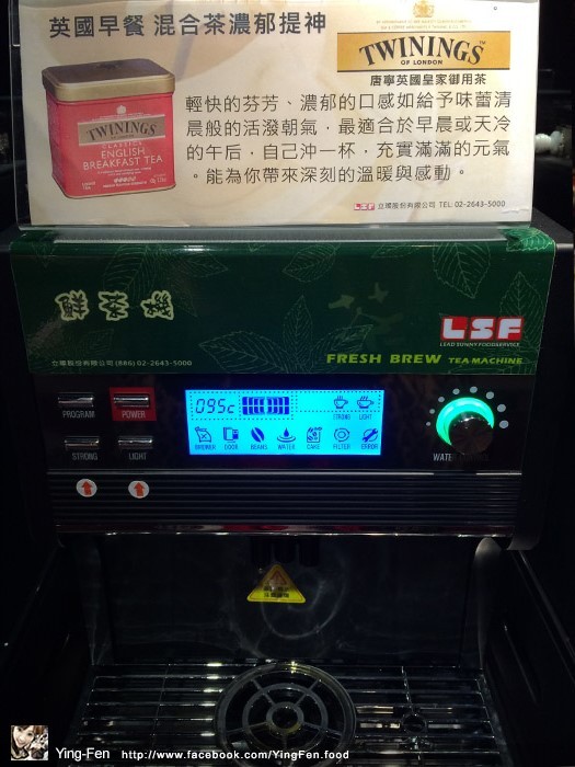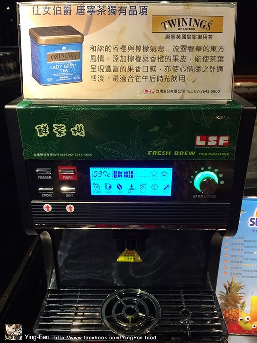熱茶機,上面有標示商品說明簡介。