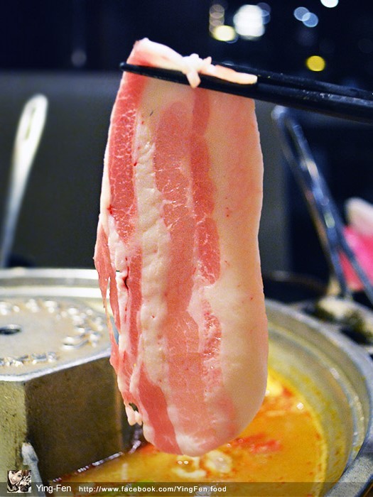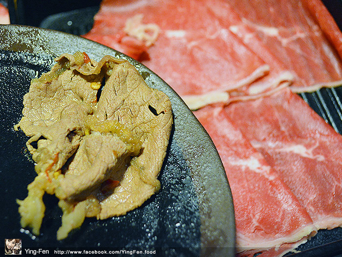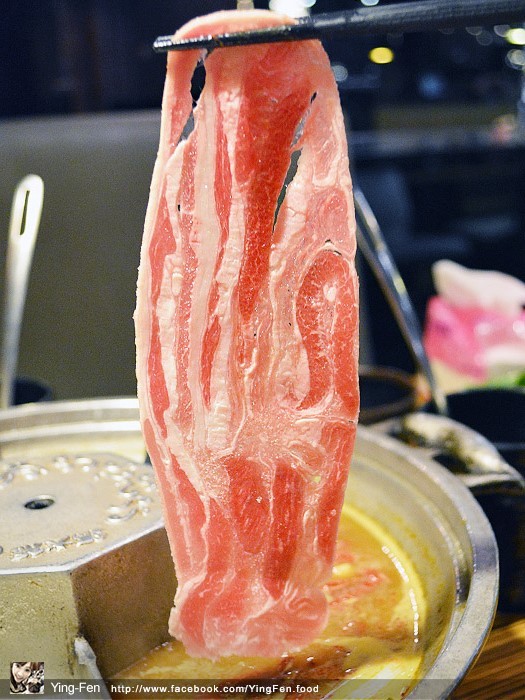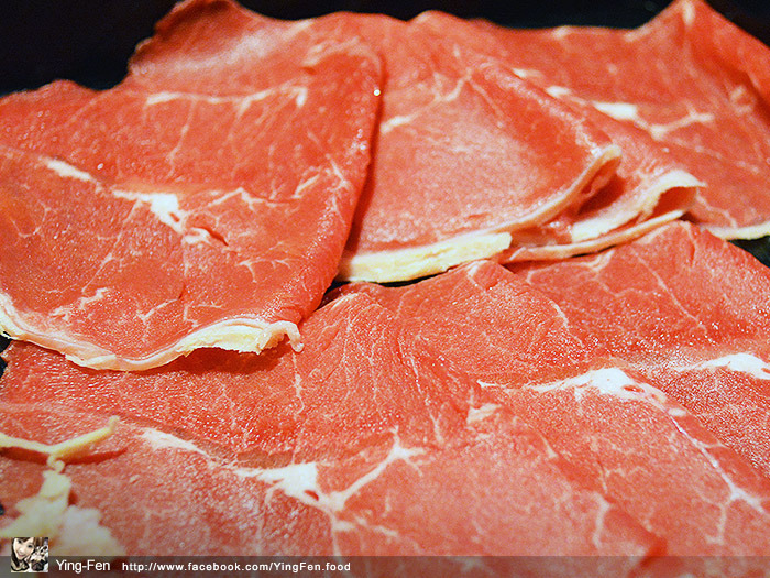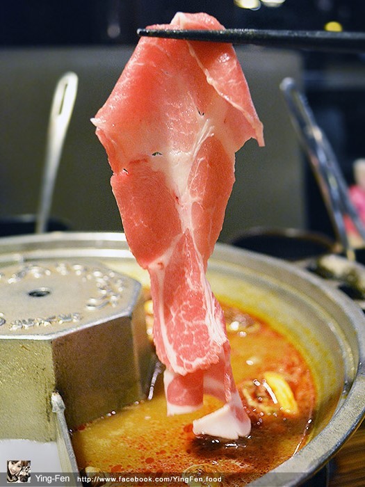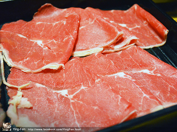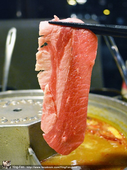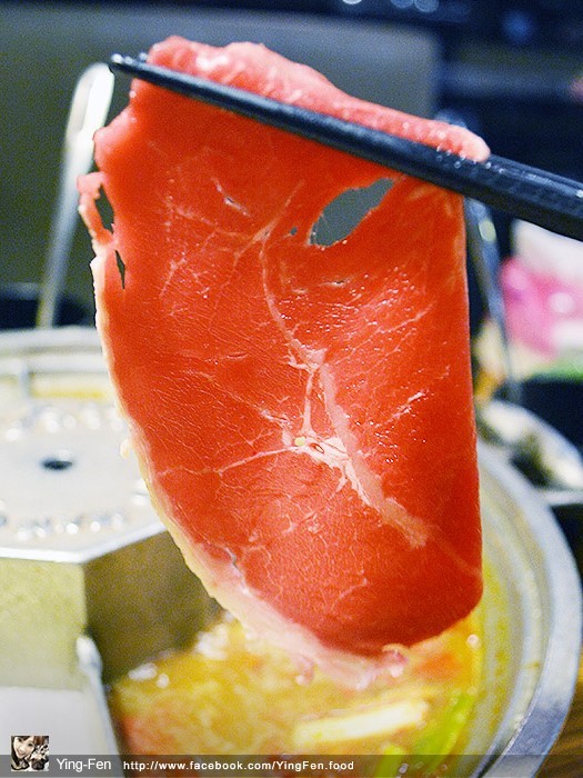 在菜單上面有個小皇冠圖示,表示人氣商品,我們點來吃看看,油脂分布在邊緣,肉的口感很嫩,吃起來不會乾柴,在蒙古紅鍋煮起來很好吃。