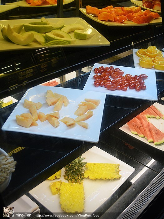 冰櫃裡面的水果全部都切塊好了,讓客人很方便夾取。