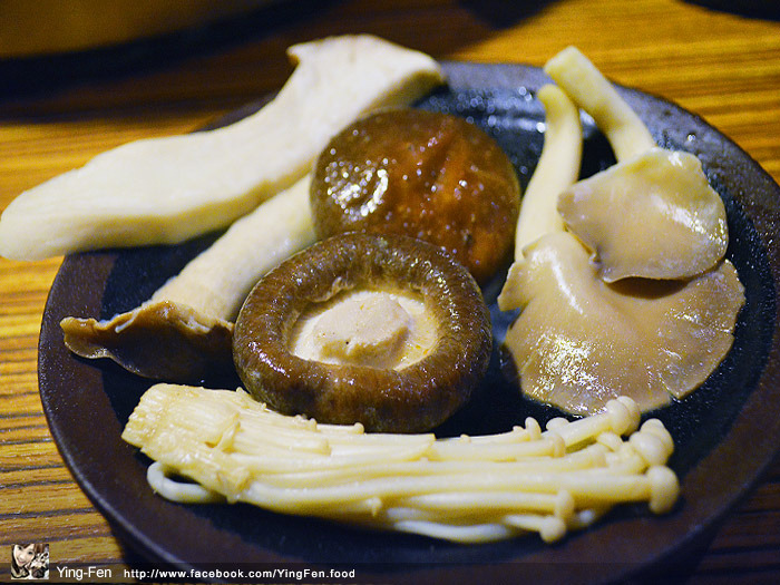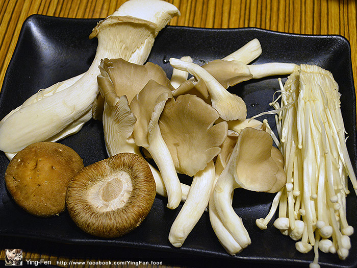 菇類綜合盤有杏鮑菇、秀珍菇、香菇和金針菇。