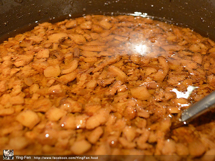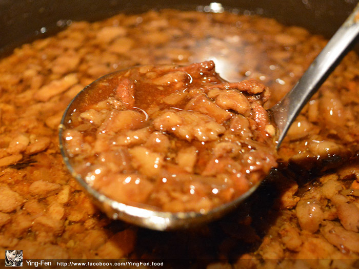 滷肉飯的滷肉在鍋子裡面,聞起來香噴噴,之前我帶朋友來吃,他們都說很好吃味道很香!