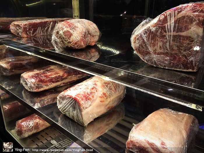 右邊有個冰櫃裡面有放好多肉塊,每塊肉都不一樣的花紋。