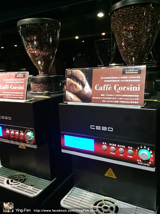 咖啡機上面有好多咖啡豆,上面也有標示說明簡介。