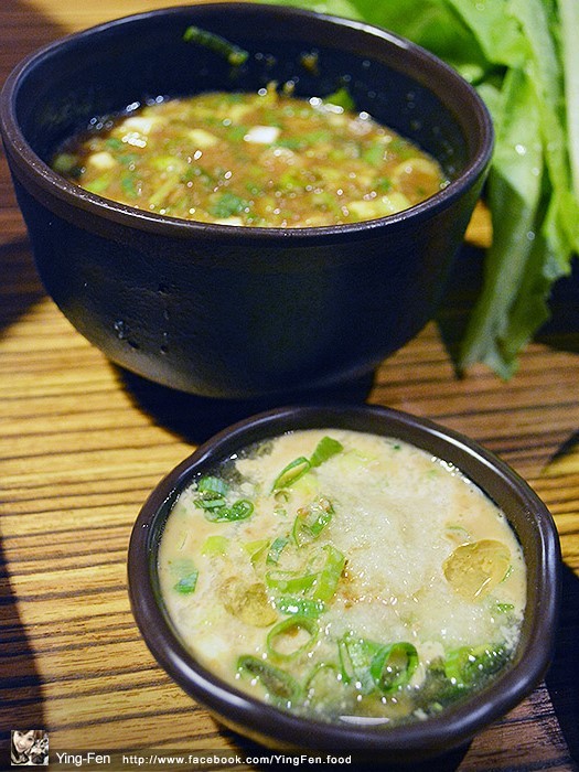 走上去可以看到醬料區和旁邊的配菜