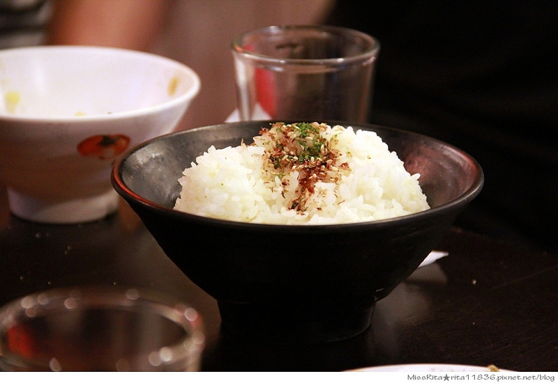 加點的白飯,上頭還有灑上海苔柴魚粉