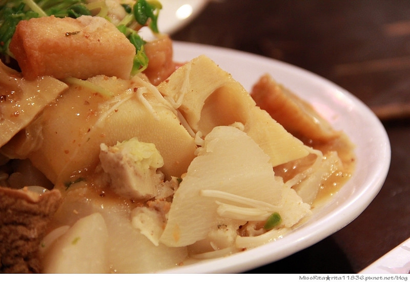 湯頭很鮮,味噌湯做為基底,加上了魚、蝦、章魚和各種蔬菜的味道