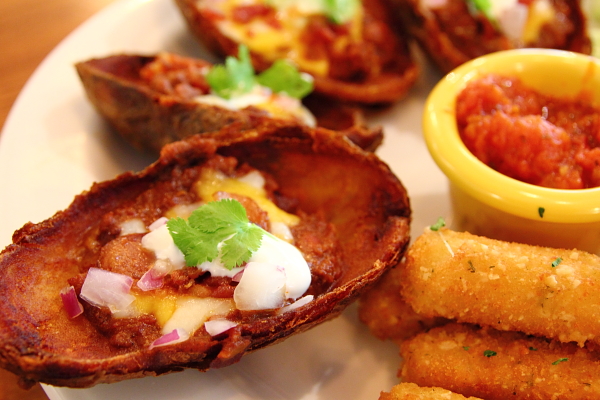 帶著些微馬鈴薯的剖半馬鈴薯皮,香酥的口感中帶著鬆軟,中間還上了洋蔥與酸奶油,微解馬鈴薯的膩感,但也非常令人容易飽食。