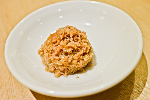 這邊的麵都會附這個調味料 吃一點後再溶進湯裡( 每一種不同顏色的也不同)