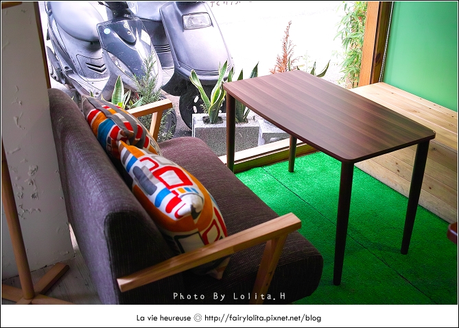 咖啡廳的後面有個長廊式坐椅區,數一數約莫可容納6~7人,其實我覺得坐在這兒是種恬靜的享受,當然如果不介紹坐小板凳的話,椅在窗邊喝下午茶的感覺好舒服,尤其這附近來往的人潮也不多,城市難能可貴的靜謐小角落顯得多麼美好與奢侈呀!