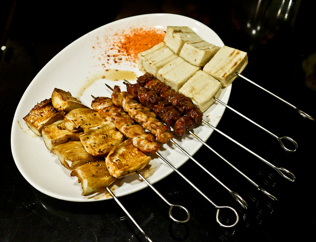 ●杏鮑菇,百頁豆腐,雞肉串,牛肉串