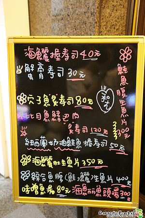 走進店內 長長的吧檯~ 可以看到 當天得食材 ,但看不到師傅的製作過程 畢竟 吧檯有點高....
