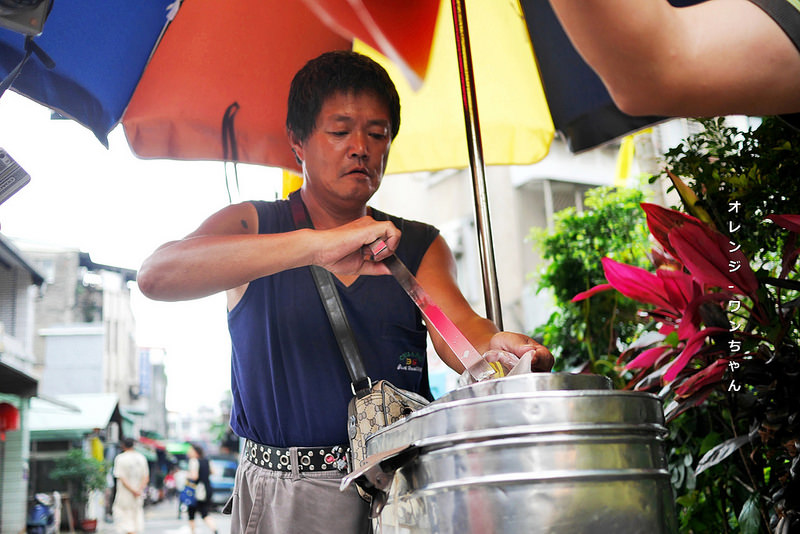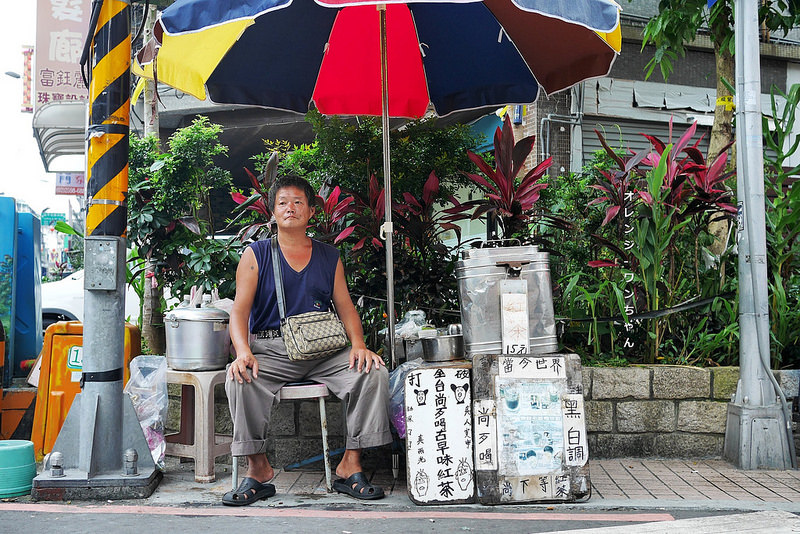 一張大陽傘下就一個中年男子..然後木架上擺著一個鐵桶..如果沒有招牌大概你不會駐足停下..
