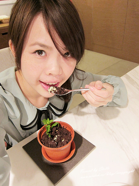品嚐完前甜點後登場的是主角,薄荷冰淇淋盆栽,Stella就是被它吸引來的