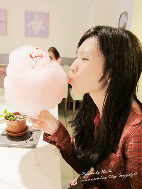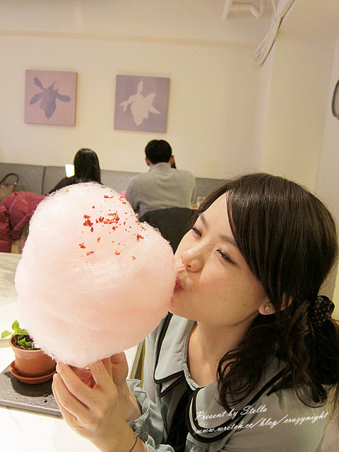 嗨翻天,棉花糖是草莓口味的唷!上面還有撒上碎玫瑰花瓣、金箔