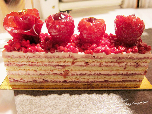 下面的千層蛋糕則是一層覆盆子奶油餡一層蛋糕堆疊而成