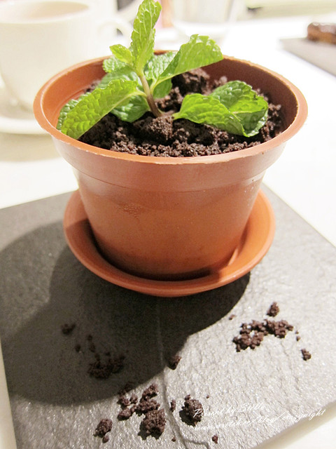 一吃下去才發現原來盆栽的土壤就是碎巧克力蛋糕,中間加了一球薄荷冰淇淋及撒上了跳跳糖