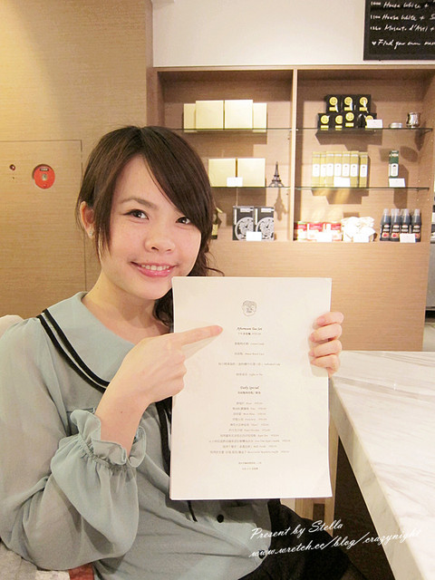 首先送上熱法式藍伯爵茶,伯爵茶是Stella的最愛,Menu上寫說伯爵茶最適合花果風味的甜點
