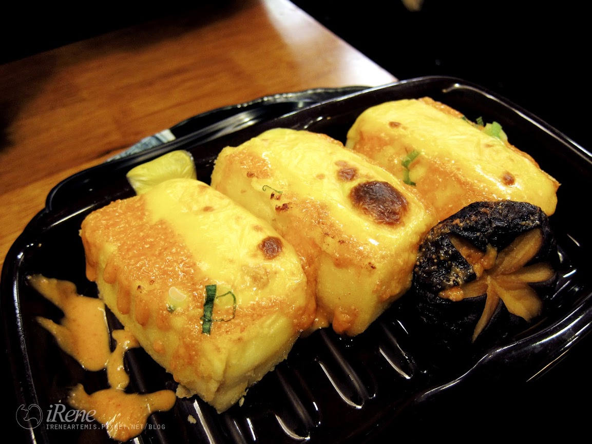 軟嫩的豆腐舖上大量起司和明太子之後下去烤,豆腐的香氣配上微鹹的起司和香濃的明太子,