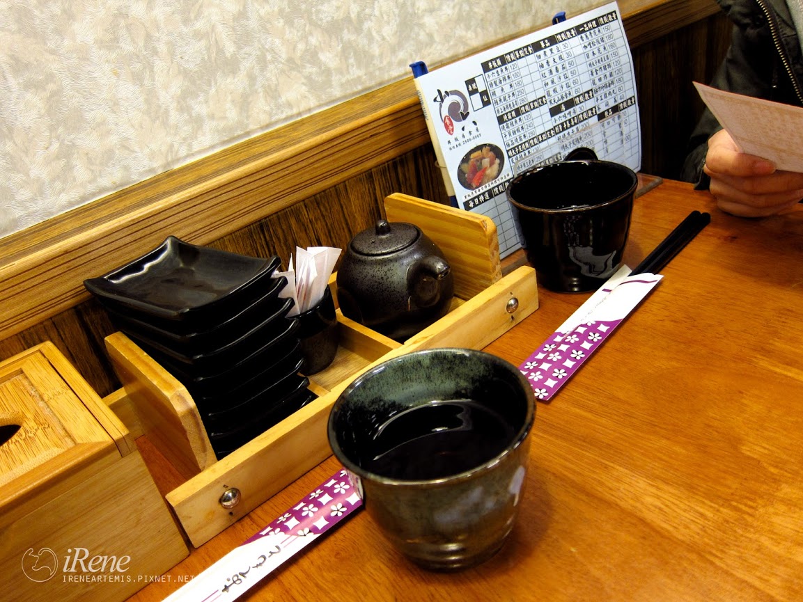 進來之後會送上簡單的熱茶,桌子雖小但該有的一樣也不少,醬料、面紙、小碟子、牙籤和菜單,