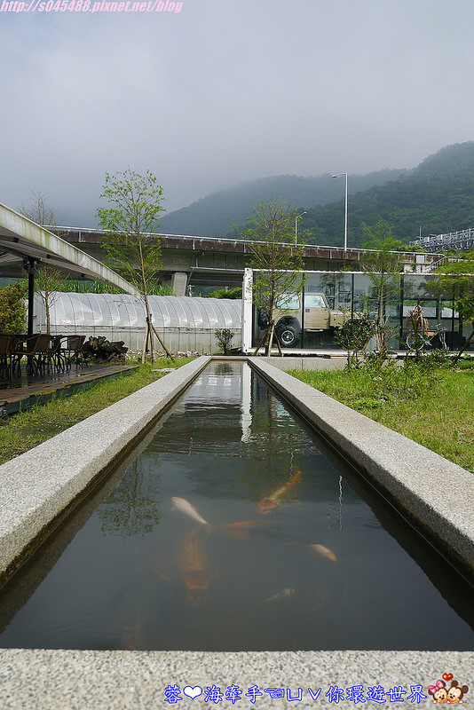 貨櫃中間的長型水池有許多條鯉魚,如果有帶小朋友來,也有販售一些魚飼料 ▼