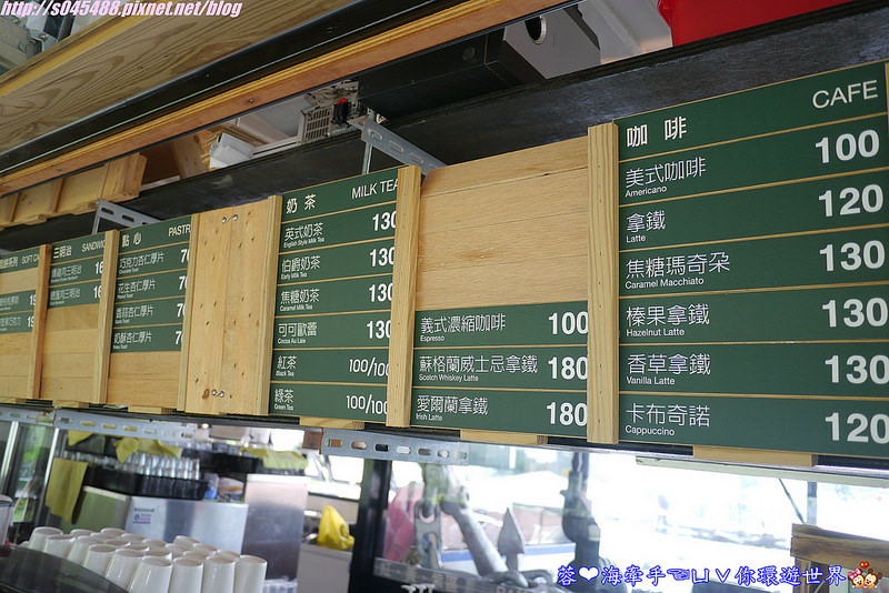 讓我們再來看點餐區,一樣是貨櫃鐵皮搭建設計,這裡提供輕食、咖啡、奶茶讓旅客選擇