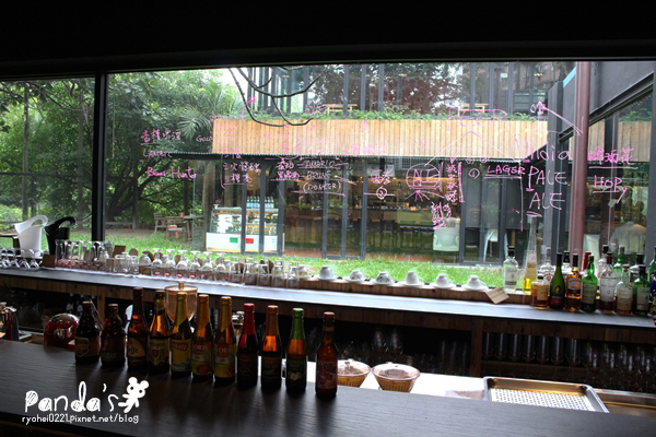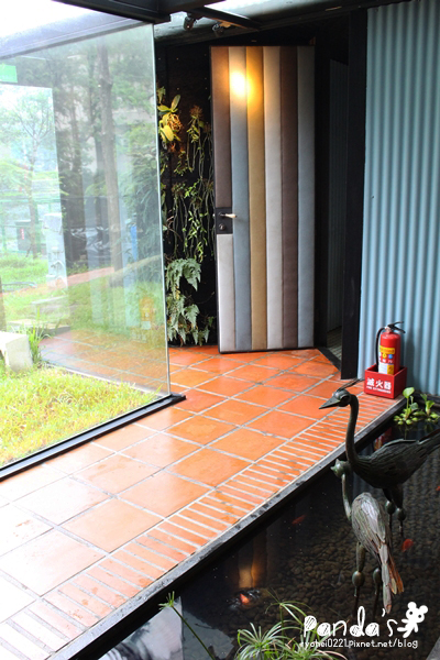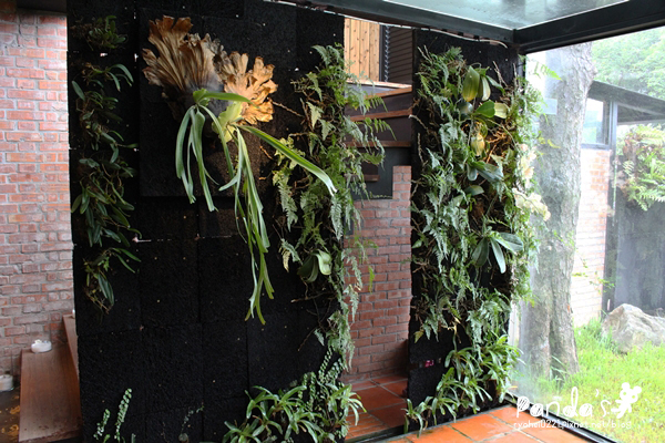 餐廳內竟然還有蕨類,而且是在牆壁上,往後面走是大片玻璃,而且他們的洗手間也有發揮創意,