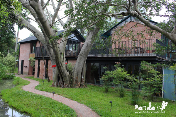 遠看似乎是兩棟的紅磚瓦建築打通的設計。