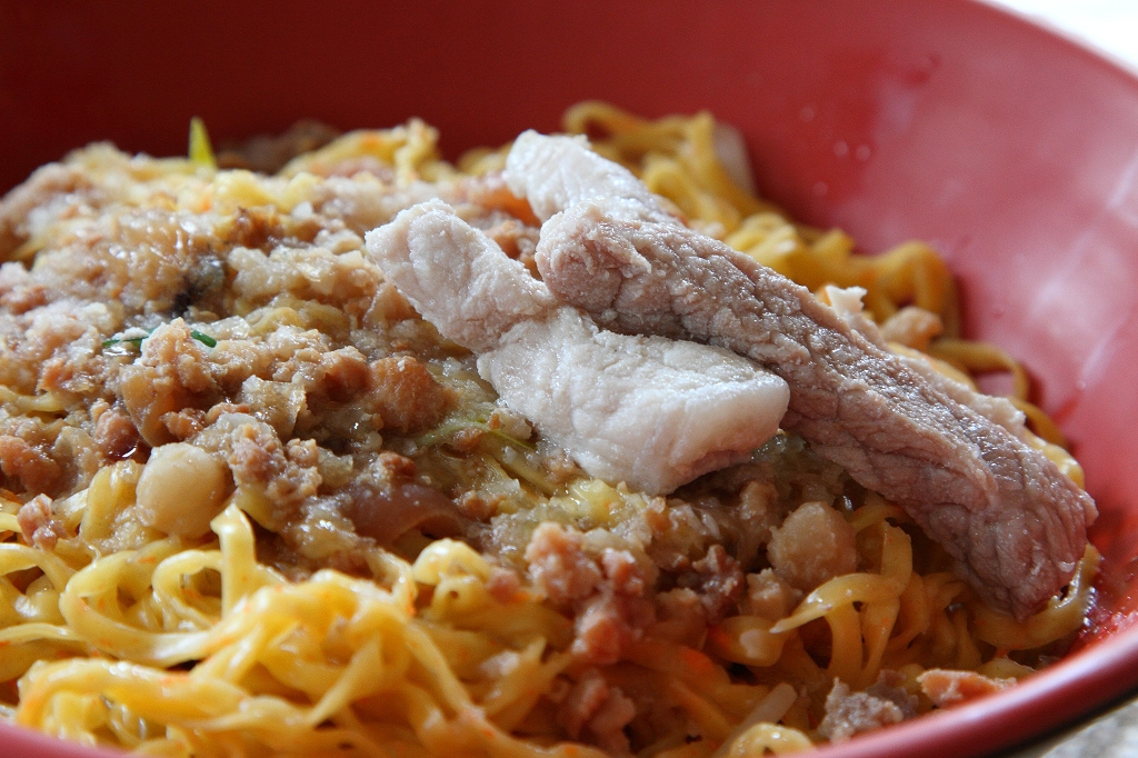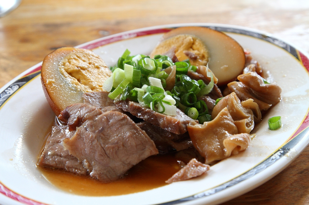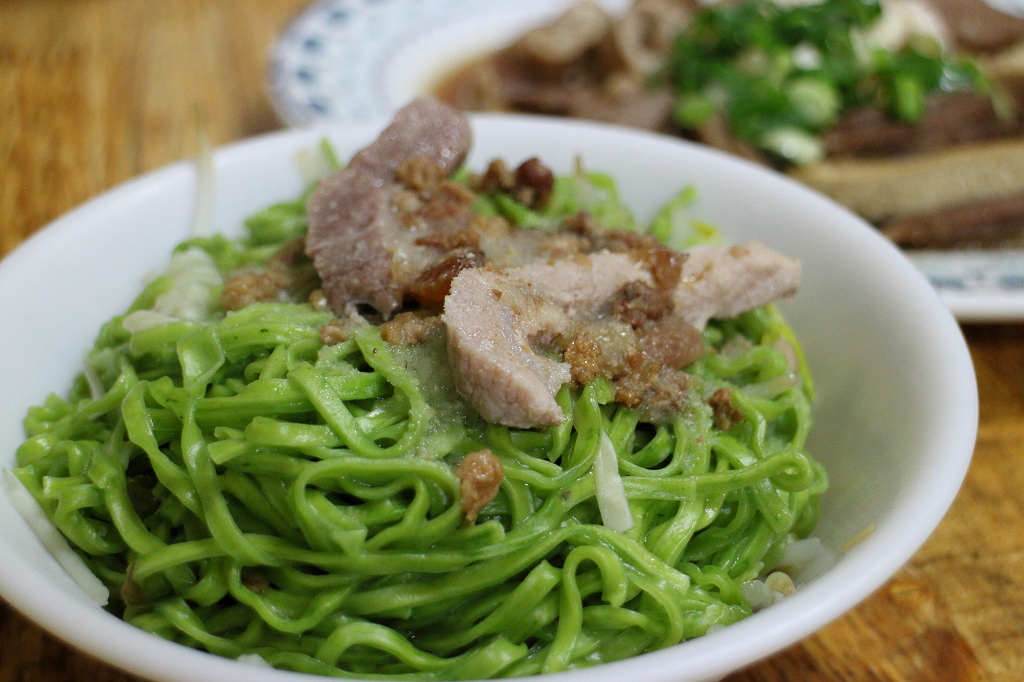 到了台南的麵食類,首先想到的是擔仔麵,除此之外,意麵似乎更受歡迎。位於府前路的阿龍意麵是我到台南沒多久就愛上的一間麵食店。意麵口味有很多種,原味和牛蒡是四季都有的種類,而紅蘿蔔及菠菜是有季節性的種類,雖然麵吃起來味道上沒有很明顯的變化,但是鮮豔的色彩令人食慾大增。除了意麵,這邊的小菜也是值得一推,大推嘴邊肉,嫩嫩不澀的口感配上微甜醬汁,讓人很難停下筷子。紅蘿蔔是橘紅色的麵條,配著蒜泥肉燥肉絲,用筷子一伴,香味隨著攪拌,一陣又一陣的擴散出來。有機會來到台南一定要嘗嘗這色彩鮮艷的意麵,享受食材所引領出味覺嗅覺視覺的衝擊。