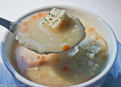 湯蠻好喝的,這種湯太稀或太稠也都不好,這邊的有水準之上,加上點麵包丁也很合我意